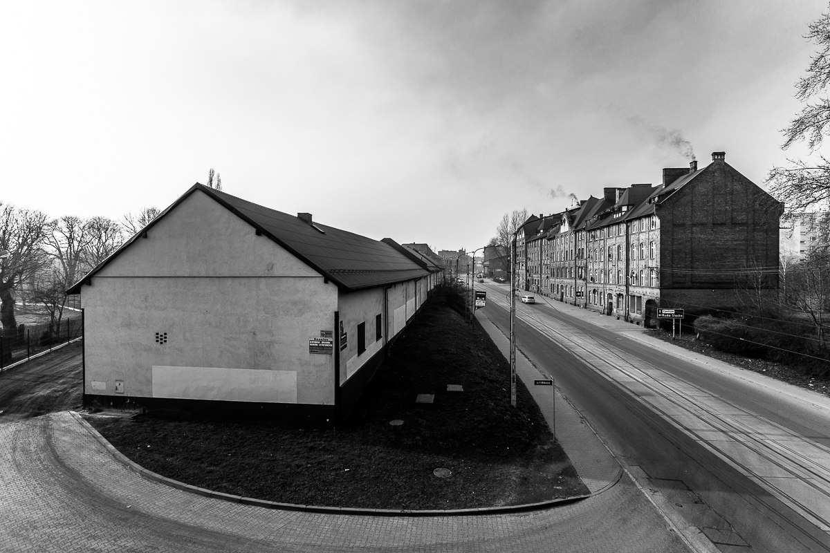 ...udało mi się tam wejść. Codziennie przejeżdżam pod tym wiaduktem kolejowym do pracy. Zawsze był zamiar, ale dopiero ostatnio wszedłem na nasyp kolejowy od ul. Mikosza i wiaduktem, a następnie torami doszedłem do ul. Kossaka. Po drodze uwieczniłem ul. Bytomską. Na szczęście dymiły kominy w masywnej kamienicy po prawej, co dodało nieco uroku. Znów jednak trochę żałuję, że zima w tym roku licha, bo tego typu widoki lubię w śniegu.